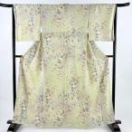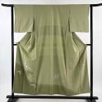 小紋 身丈162cm 裄丈66.5cm M 袷 草花 金彩 ぼかし 抹茶色 正絹 名品 中古