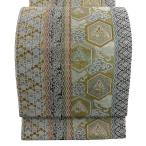 美品 袋帯 名品 亀甲 鳥 金銀糸 刺繍 抹茶色 六通 正絹 中古