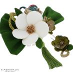 成人式 髪飾り 2点セット「緑色のリボン 白色のお花 房飾り」振袖髪飾り 袴髪飾り 前撮り (No.512<H>ss2512wkk10