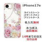 iPhone17e アイフォン17e らふら 名入れ スマホケース ラインストーン スマホカバー 押し花風 ローズピンク