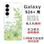 Galaxy S26+ SC-52G SCG38 SM-S947Z ギャラクシーS26+ らふら 名入れ スマホケース ラインストーン スマホカバー 押し花風 ボタニカル グリーン