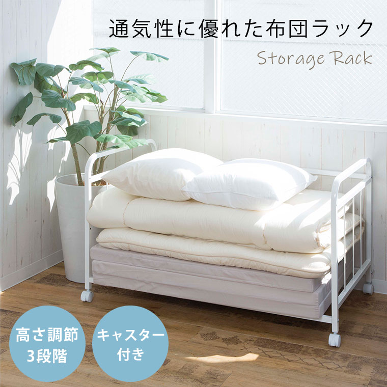 布団ラック ふとんラック 布団収納 布団置き ワゴン ラック アイデア キャスター付きラック 布団収納ラック シングル おしゃれ 白 ホワイト アイアン スチール 布団置き場 押し入れ 押し入れ収納棚 押し入れワゴン 押し入れラック 押入れラック 掛け布団 マットレス 枕