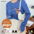 ジンジャー フライス カットソー インナー トップス レディース ロンT 長袖 指穴 指ぬき サムホール クルーネック 吸湿発熱 抗菌防臭 生姜成分配合 コットン ストレッチ 重ね着 暖か 防寒 春 秋 冬