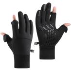釣り 手袋 2本指出し フィッシンググローブ 指ぬき 防寒 防水 ネオプレン 裏起毛 冬 アウトドア サイクリング (ブラック, L)