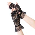 レース 手袋 白 黒 手袋 演奏会 ブライダル 花嫁 指ぬき フィンガーレス 送料無料 薔薇レースフリル付きショートグローブ