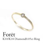 指輪 ダイヤモンド リング レディース K10/K18 0.05ctグ 1粒ダイヤモンド ミル打ち アンティーク調 細身 華奢 重ね着け ギフト 誕生日 4月誕生石