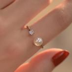 リング 指輪 フォークリング 天然淡水パール 上品 調整可能 誕生日 母の日 記念日 ランチ会 テレワーク 金属アレルギー対応