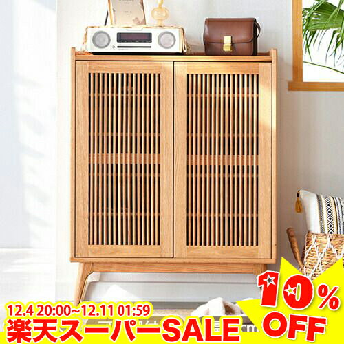 \楽天スーパーSALE★10%OFF/キャビネット 木製 収納棚 靴箱 スリム シューズラック 下駄箱 収納ラック 5段 玄関収納 収納棚 チェスト 飾り棚 収納チェスト シューズボックス シューズ掛け 置き台 大容量 ラタン扉付き 通気 ナチュラル 高級感 コンパクト 幅80cm