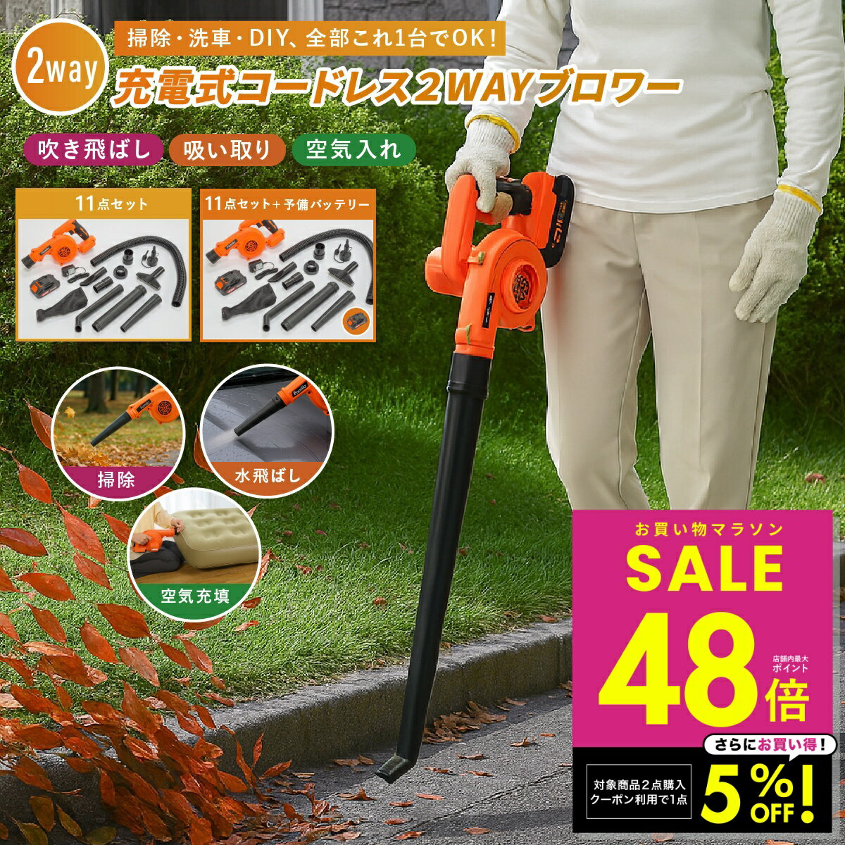 【2点購入で1点5%OFFクーポン!〜2/10 1:59】ファミラ 充電式コードレス2WAYブロワー 充電式 小型 送風機 バキューム 落ち葉 掃除 ノズル 吸引 家庭用 強力 電動 車 ベランダ 空気入れ 電動 送風 吸い取り 掃除機 吸塵機 集じん p10