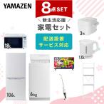 家電セット 一人暮らし 8点セット 冷蔵庫 106L 洗濯機 6kg 電子レンジ シーリングライト 6畳 32型 液晶テレビ 電気ケトル 掃除機 ラック