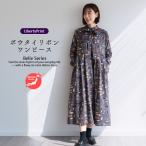 Belle長袖OP <ダフォディルローズ> ボウタイリボン付ワンピ 春秋冬 授乳服 体型カバー 大人ワンピ リバティプリント 国産