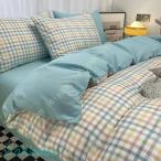 掛け布団カバー シングル チェック 布団カバー 洗いざらし北欧 おしゃれ 韓国風 寝具カバー ダブル ピーチスキン加工 防ダニ 抗菌防臭 速乾 掛ふとんカバー