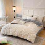 掛け布団カバーセット 北欧 冬用 フランネル マイクロファイバー 無地 ボーダー シンプル おしゃれ ダブル クイーン キング かけ布団カバー シンプル 無地