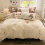 4点セット 掛け布団カバー クイーン マイクロファイバー 暖かい 布団カバー 姫系 ボックスシーツ 厚手起毛 可愛い 掛ふとんカバー 柔らか 敷き布団カバー