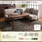 (タイムセール中) ダイニングこたつセット 3人用 おしゃれ 4点セット(テーブル105+2P+1P+コーナー)