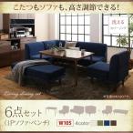 (タイムセール中) ダイニングこたつセット 6人用 おしゃれ 6点セット(テーブル105+2P+1P×2脚+コーナー+ベンチ)