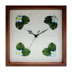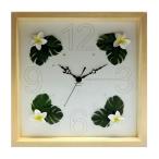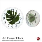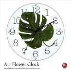壁掛け時計 ウォールクロック アートフラワー モンステラ 造花 ガラス製 ナチュラル ボタニカル お洒落 植物 グリーン 癒し 鮮やか ハワイアン 葉