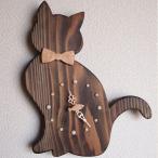【送料無料】銘木の掛け時計 回る魚とお座り猫(智頭杉・ブラック)【バイオリン職人の手作り】