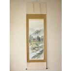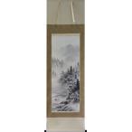 掛け軸 水墨山水 (堀江湖城) (掛軸小物なし) 【掛軸】