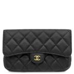 シャネル ショルダーバッグ フラップ フォンケース レザー ブラック チェーンウォレット AP2096