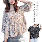 シフォン ブラウス レディース 夏 植柄 フラワー フレアー シャツ ゆったりサイズ さらさらシフォン ドライ感を
