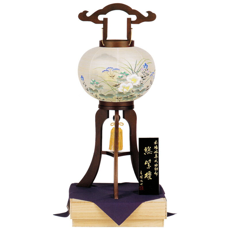 盆提灯 盆ちょうちん お盆 新盆 初盆 御供 大内行灯 総紫檀 10号 絹二重張 芙蓉に桔梗 LED灯