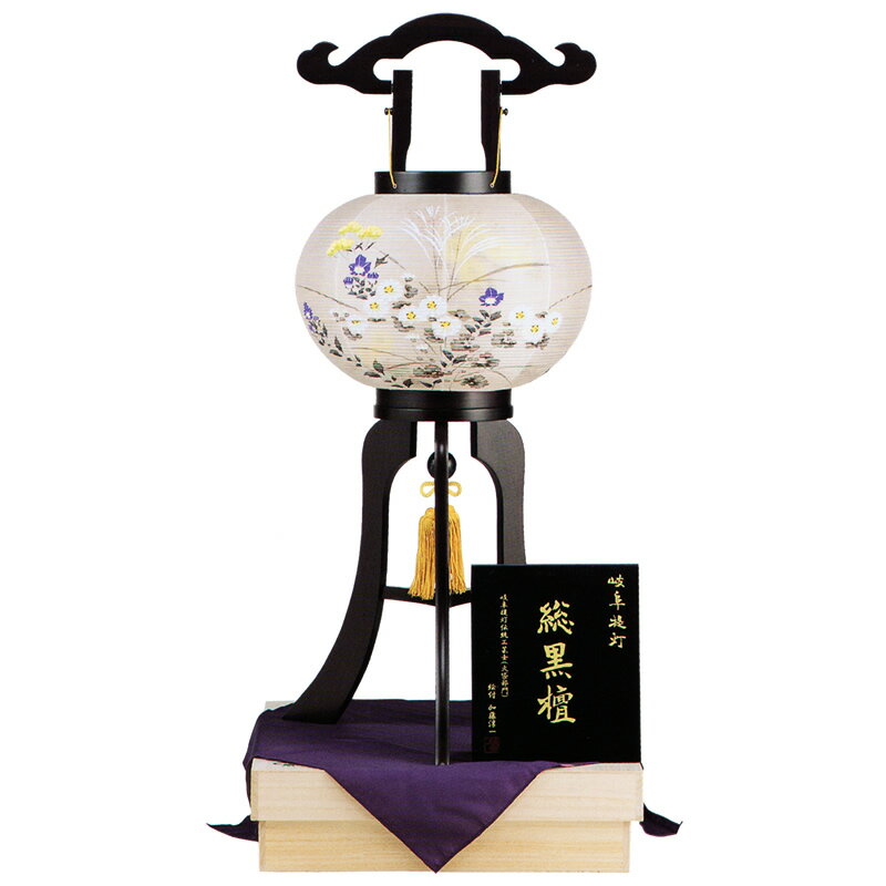 盆提灯 盆ちょうちん お盆 新盆 初盆 御供 大内行灯 総黒檀 10号 絹二重張 小菊に萩 LED灯