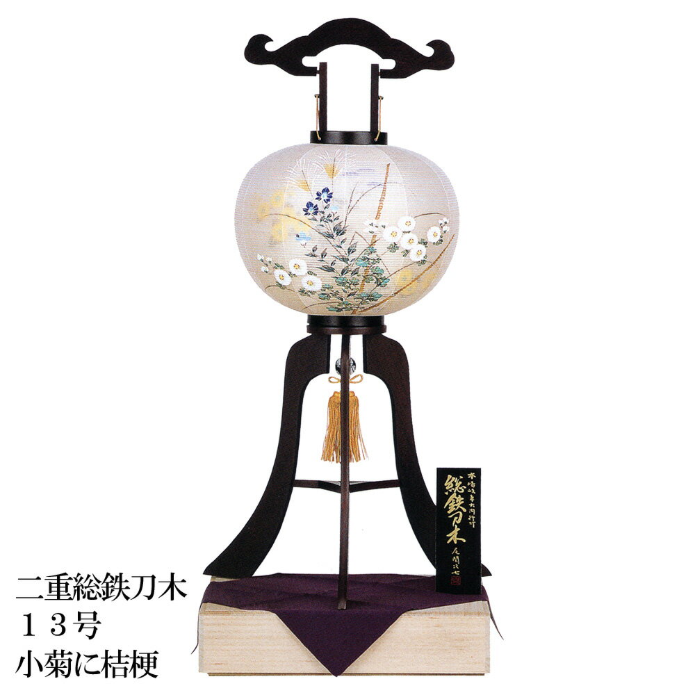 盆提灯 盆ちょうちん お盆 新盆 初盆 御供 大内行灯 総鉄刀木 13号 絹二重張 小菊に桔梗 LED灯