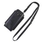 極美品△PRADA プラダ 1ZT019 サフィアーノレザー トライアングルロゴ 三角プレート ネックストラップ スマホケース 携帯ケース ブラック
