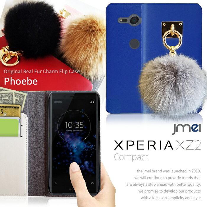 Xperia XZ2 Compact SO-05K ケース 手帳 本革 ファー チャーム スマホケース 手帳型 かわいい エクスペリア xz2 コンパクト カバー スマホ スマホカバー sony レザー 携帯ケース