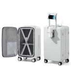 Size:Sサイズ 機内持ち込み/35L_Color:ホワイト [Hanke] スーツケース 機内持ち込み キャリーケース 片開き 多機能 キャリーバッグ USBポート付き カップホルダ