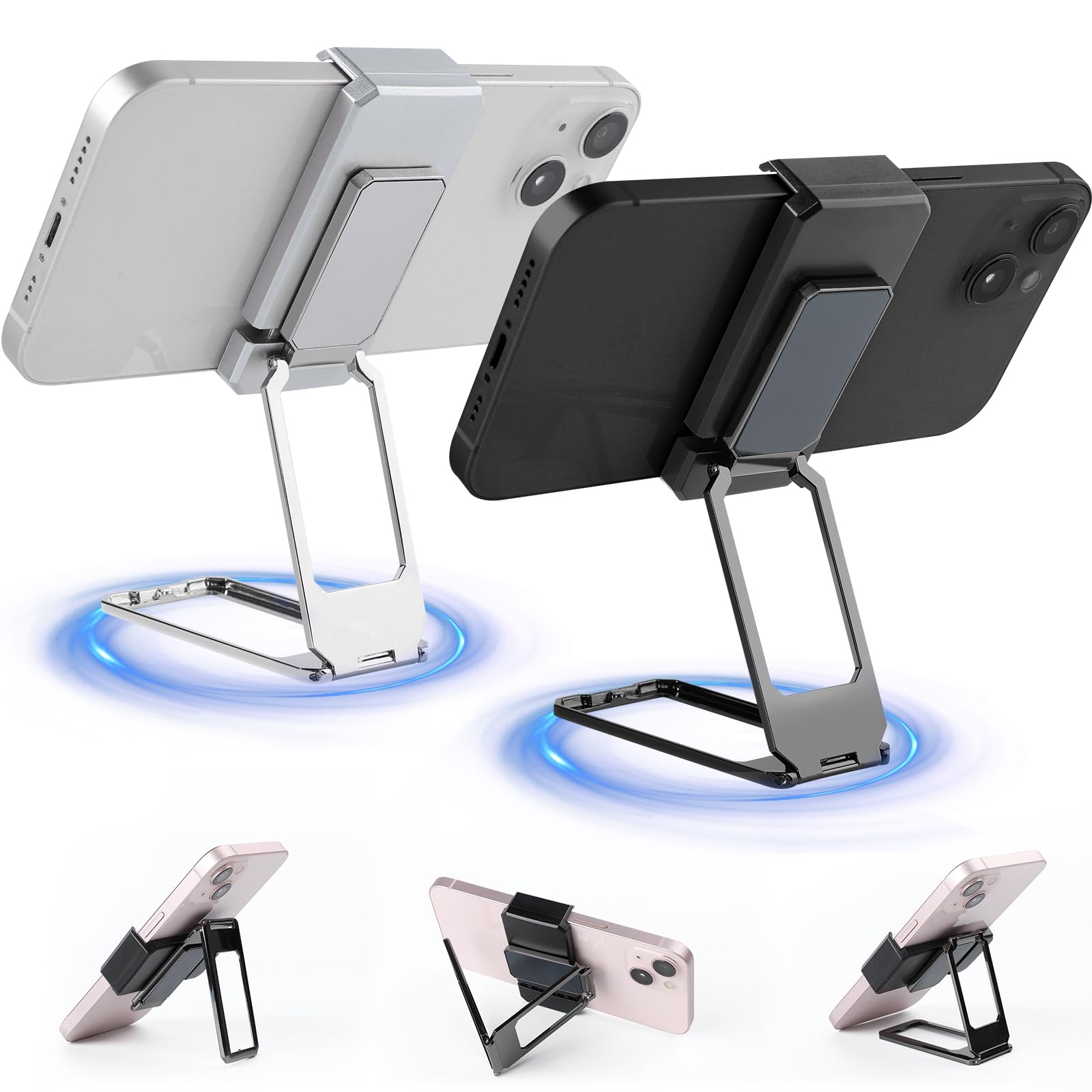 アップグレード版 バッククリップタイプ 360 折りたたみ式ブラケット 携帯電話スタンド 完全に調節可能な電話スタンド 折りたたみ式 デスクトップフォンホルダー クレードルドック 携帯電話スタンド デスク用 すべてのスマートフォン用 (ブラック+シルバー)