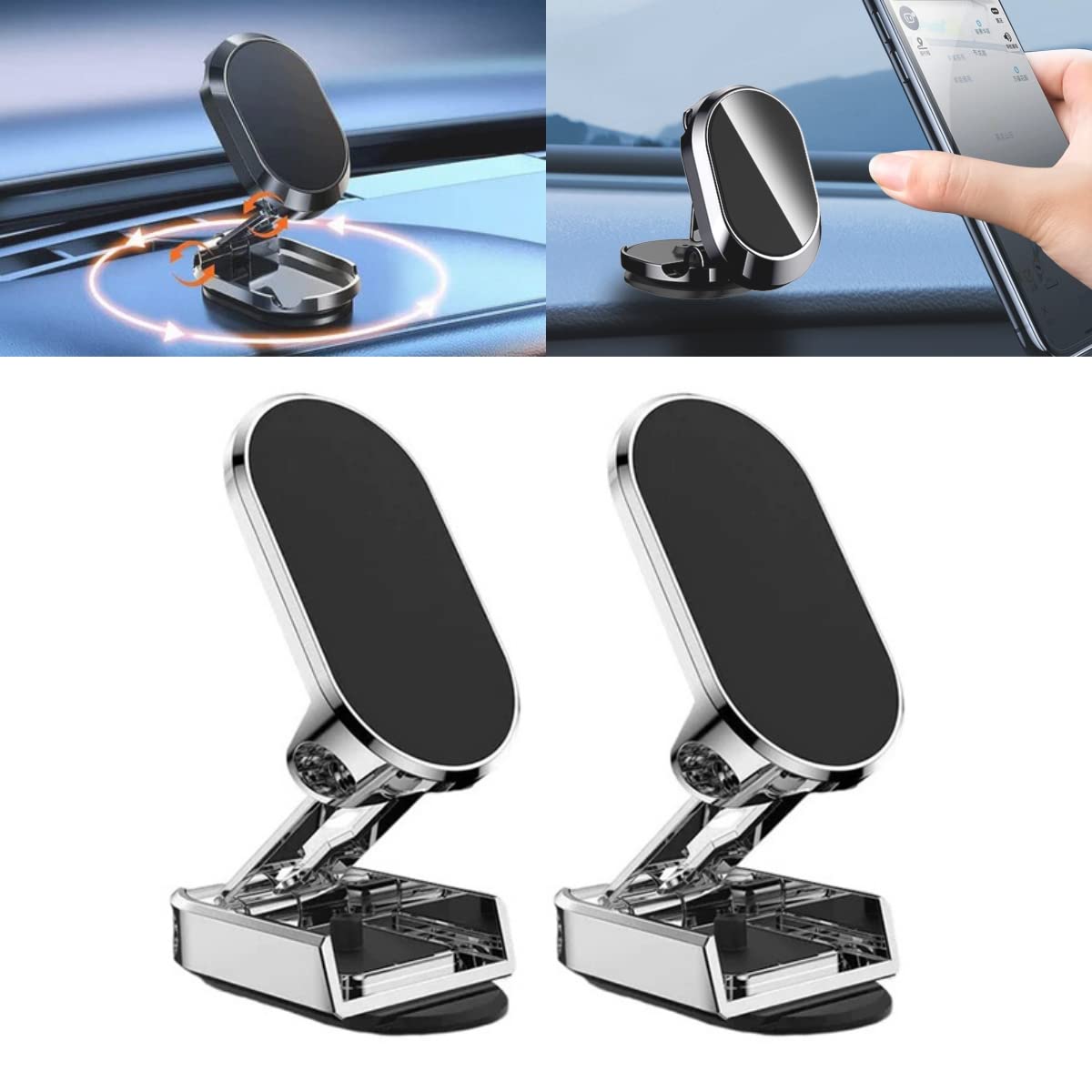 合金折りたたみ式磁気車載電話ホルダー 360°回転可能な携帯電話ホルダー 折りたたみ式携帯電話ブラケット スマートフォンサポート ミニポータブル携帯電話スタンド ユニバーサルダッシュボード 車用携帯電話マウント (2個_シルバー)