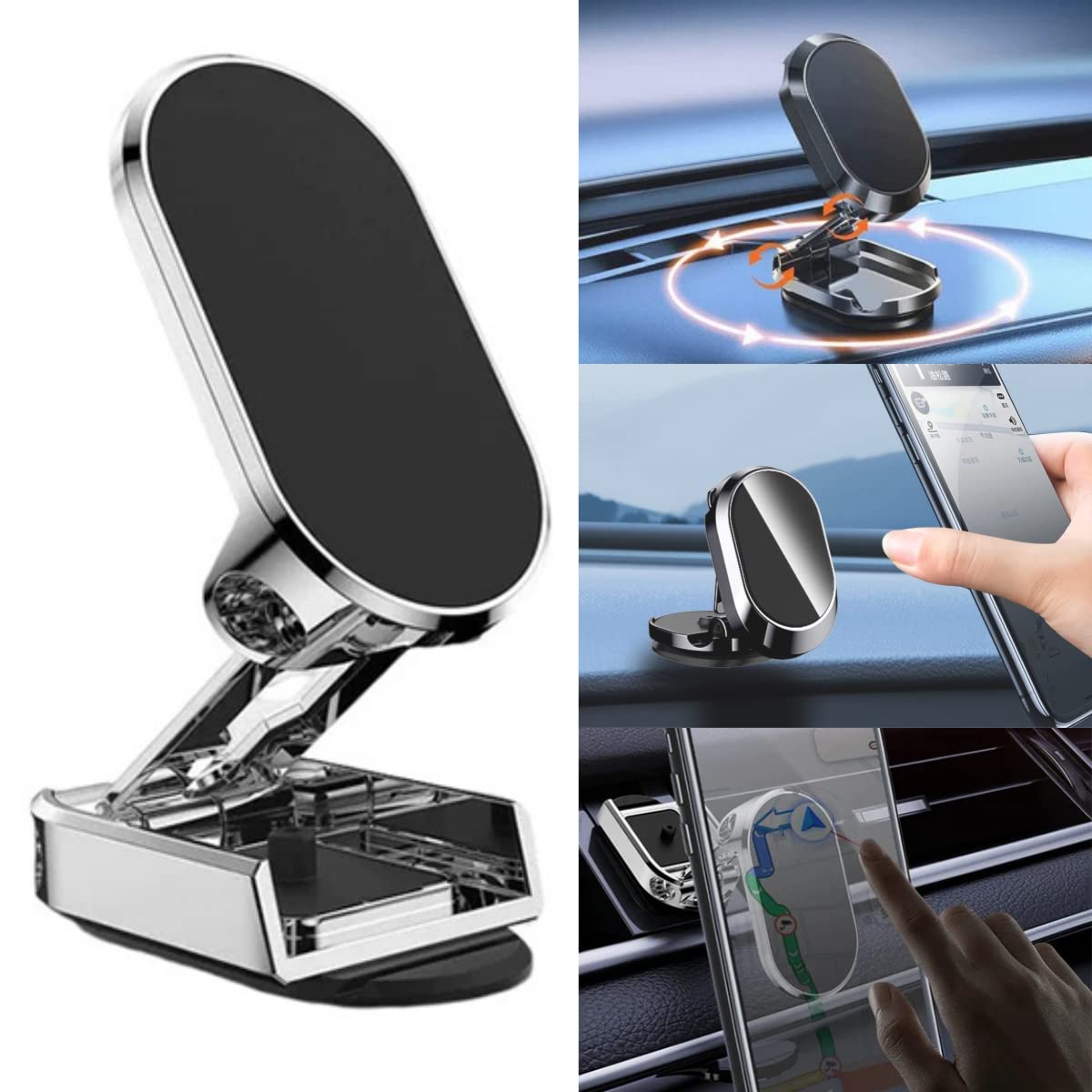 合金折りたたみ式磁気車載携帯電話ホルダー 360°回転可能な携帯電話ホルダー 折りたたみ式携帯電話ブラケット スマートフォンサポート ミニポータブル携帯電話スタンド ユニバーサルダッシュボード 車載電話マウント (シルバー)