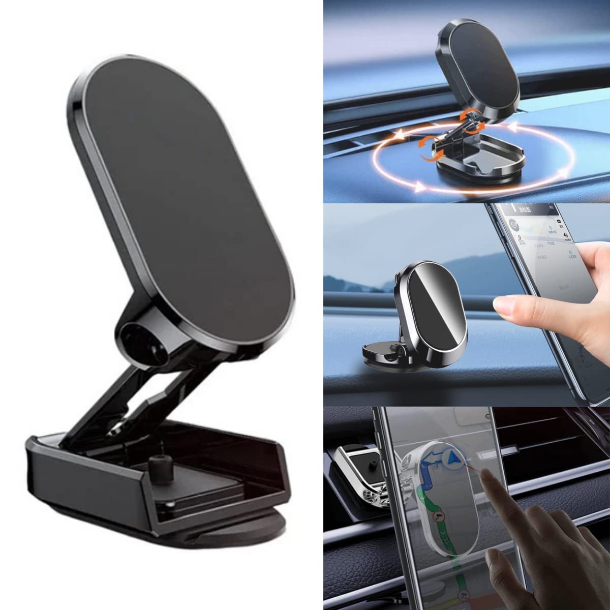 合金折りたたみ式磁気車載携帯電話ホルダー 360°回転可能な携帯電話ホルダー 折りたたみ式携帯電話ブラケット スマートフォンサポート ミニポータブル携帯電話スタンド ユニバーサルダッシュボード 車載電話マウント (ブラック)