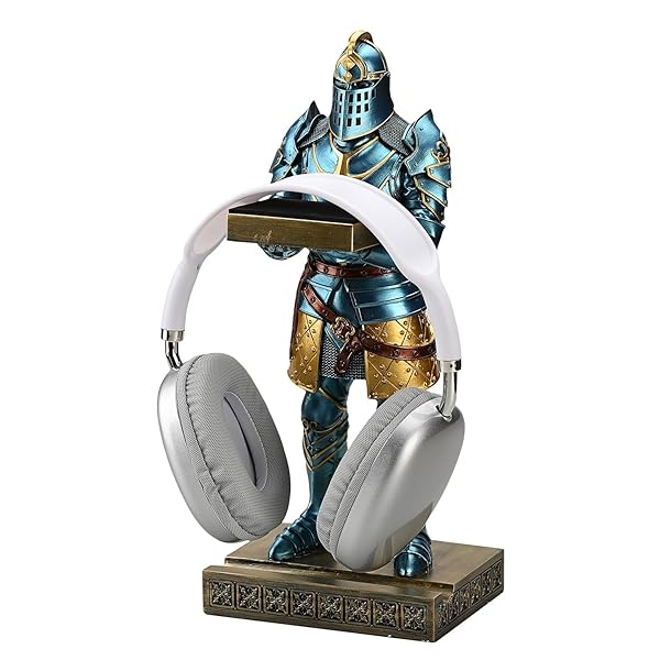 King's Guard ヘッドホンスタンド 時計ディスプレイスタンド ジュエリーブレスレット ネックレスホルダー トレイ タワー 戦士の騎士 携帯電話スタンド オフィスや自宅用 12.20インチ(ブルー)