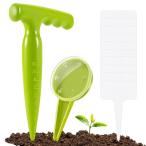 12点セット播種機 種子播種機 花の播種機 5速調整可能 園芸穴ドリル 庭農業 農業小道具 ガーデニングツール (1つのパンチ*1つの種まき器*10枚のラベル)