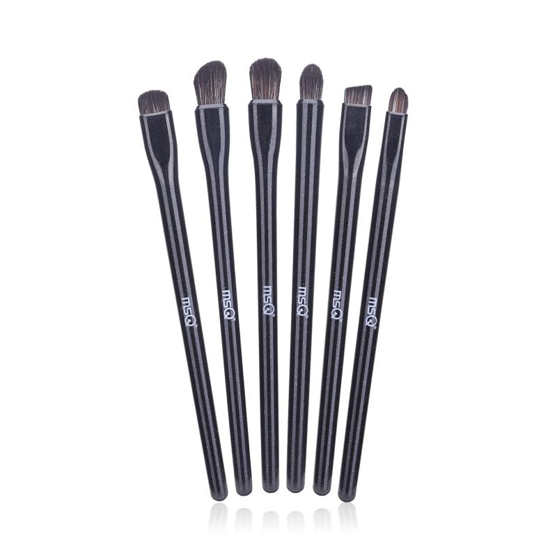 MSQ アイシャドウ ブラシ メイクブラシ 6本セット メイク 筆 高級繊維毛 超柔らかい 日常の化粧 携帯便利 敏感肌適用 (ブラック)