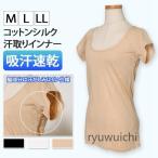 インナーシャツ レディース 半袖 Tシャツ 汗取り シルク混 綿混 トップス 肌着 薄手 夏 吸汗 吸水 速乾 無地 ロング丈 脇汗 丸首