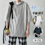 パーカー メンズ 半袖パーカー Tシャツ プルーオーバー 夏 薄手 涼しい 無地 大きサイズ フード付き カジュアル スポーツ 運動着 通勤 通学
