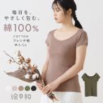 綿日和 綿100% フレンチ インナー シャツ 天然素材 コットン 抗菌防臭 縫い目なし タグなし 深あき くすみカラー 敏感肌 レディース 春夏秋冬 半袖