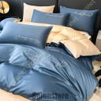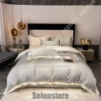 掛け布団カバー 英字刺繍 フラットシーツ 掛ふとんカバー 姫系 寝具カバーセット シルク見たい 接触冷感 掛け布団カバー 4点セット ダブル 敷き布団カバー