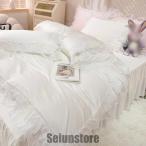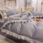 姫系 布団カバー 4点セット 掛け布団カバー シングル ダブル 北欧 フリル おしゃれ 枕カバー ベッドスカート かわいい クイーン ダブル 刺繍 寝具カバー