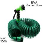 散水ホース おしゃれ ノズル 器具 コイルホース 15m 伸縮 おしゃれ ガーデニング 洗車 ジョイント ホース 水やり 散水 ワンタッチ装着 EVA