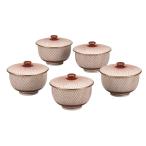 九谷焼 蓋付汲出揃 5客湯呑 赤網<ギフト プレゼント お返し 誕生日 敬老の日 お祝い 新築 引っ越し>