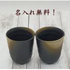 名入れ 湯飲み ペア 万葉湯呑 [日本製 美濃焼 食器] 伊賀備前吹 敬老の日 ペアギフト プレゼント 両親 ペア 湯呑