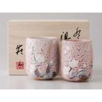 【有田焼 真右ェ門窯 桜花紋 組湯呑(木箱付)】有田焼 磁器 ゆのみ コップ セット 夫婦湯呑 ピンク お茶 コーヒー 敬老の日 退職記念品 おしゃれ 和食器 ギフト 引き出物 内祝い プレゼント