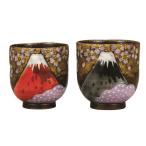 九谷焼 組湯呑/ペア湯呑 金雲桜富士<ギフト プレゼント お返し 誕生日 敬老の日 お祝い 新築 引っ越し>