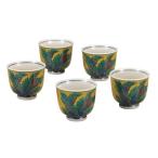九谷焼 汲出揃 5客湯呑 緑彩唐草花鳥<ギフト プレゼント お返し 誕生日 敬老の日 お祝い 新築 引っ越し>