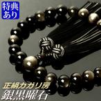 数珠 念珠 銀黒曜石 (銀耀石) 共仕立 正絹カガリ房(桐箱付)(略式数珠(男性用)/京念珠)